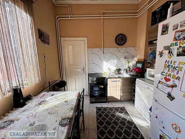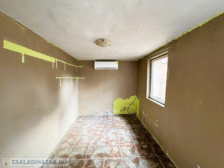A földszinten található két szoba, konyha, fürdőszoba, külön WC, valamint padlásfeljáró. A helyiségek laminált padlóval és járólappal burkoltak.