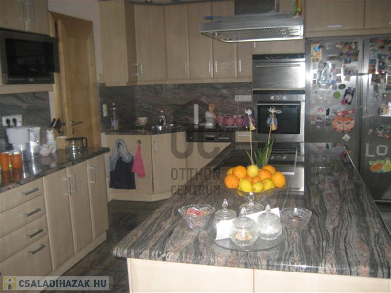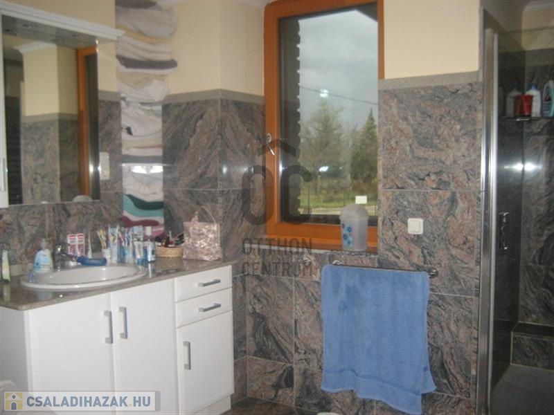 A ház hangulatához és eleganciájához jól illeszkedik az uralkodó gránit-burkolat, a hálószobákban fa-parketta.