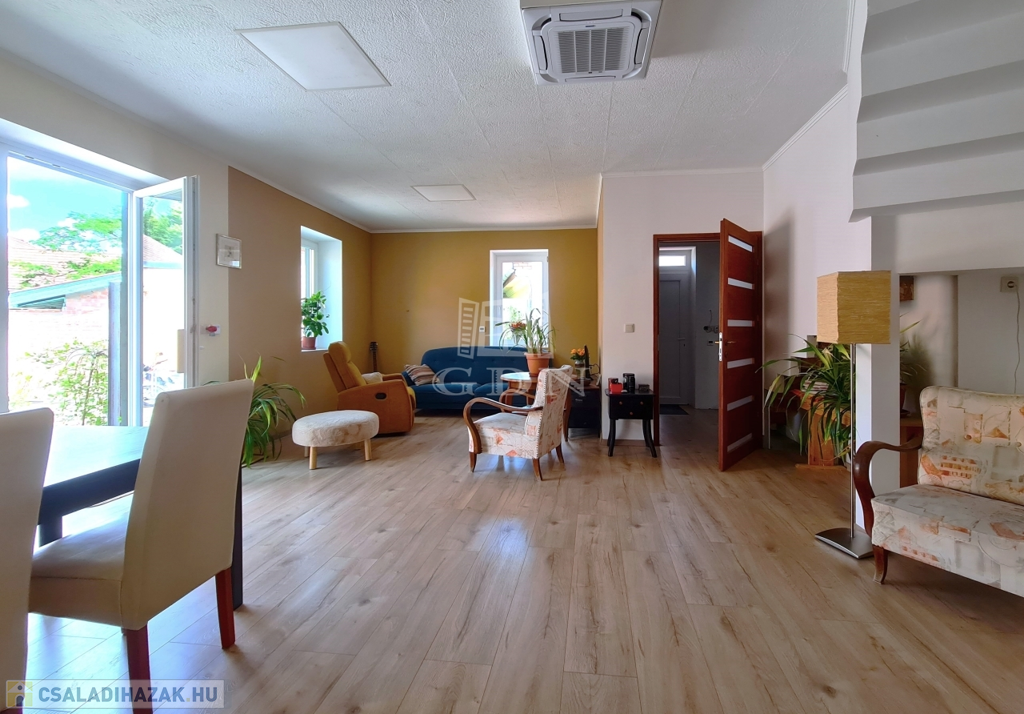 A ház háromrétegű nyílászárókkal és klímával rendelkezik.