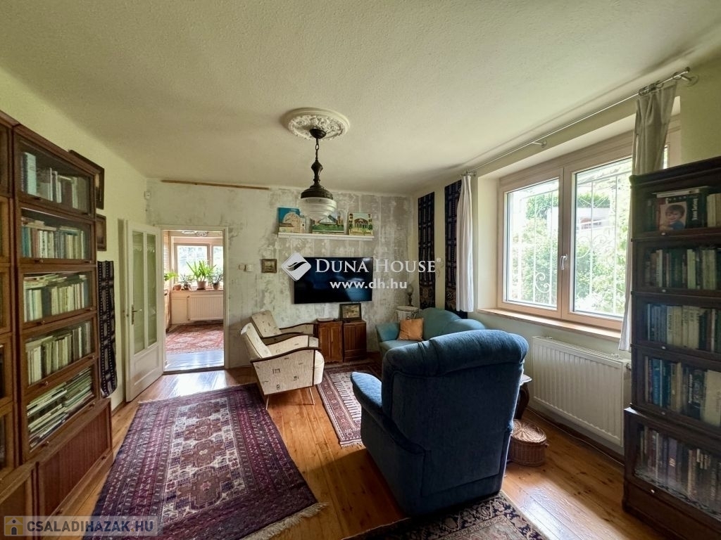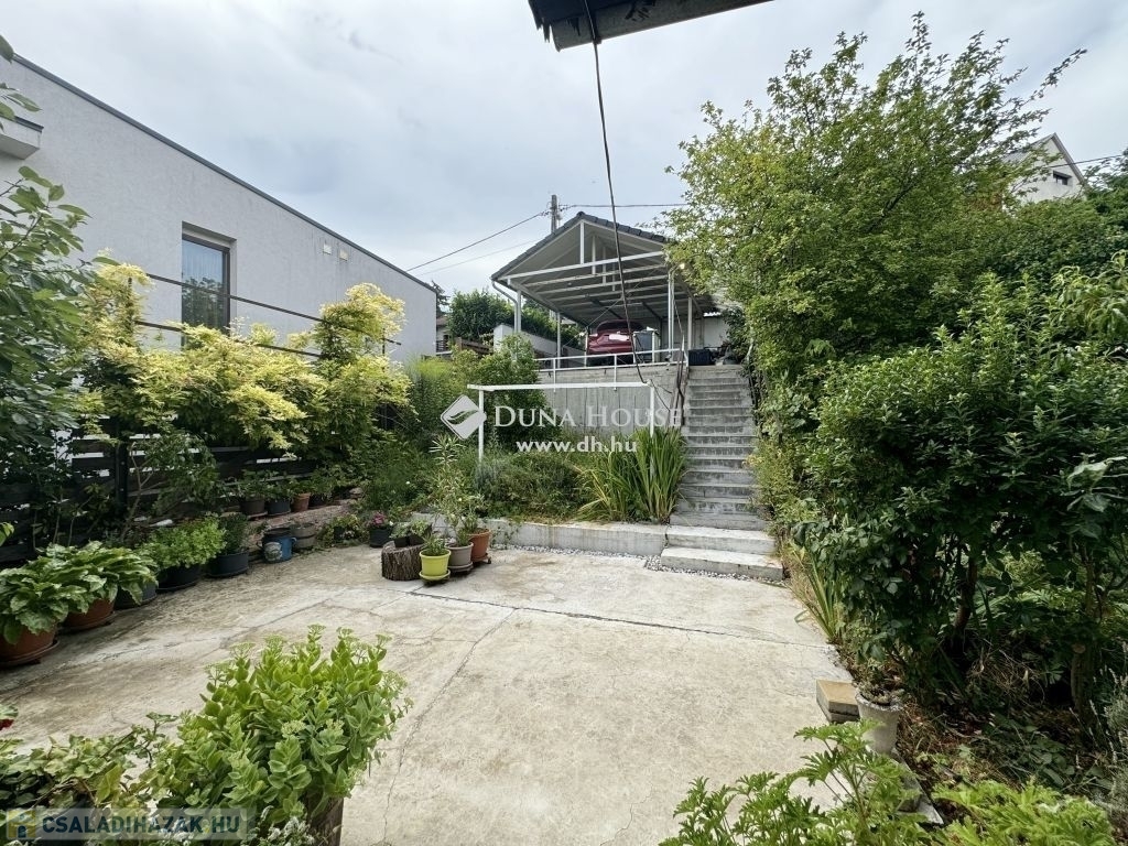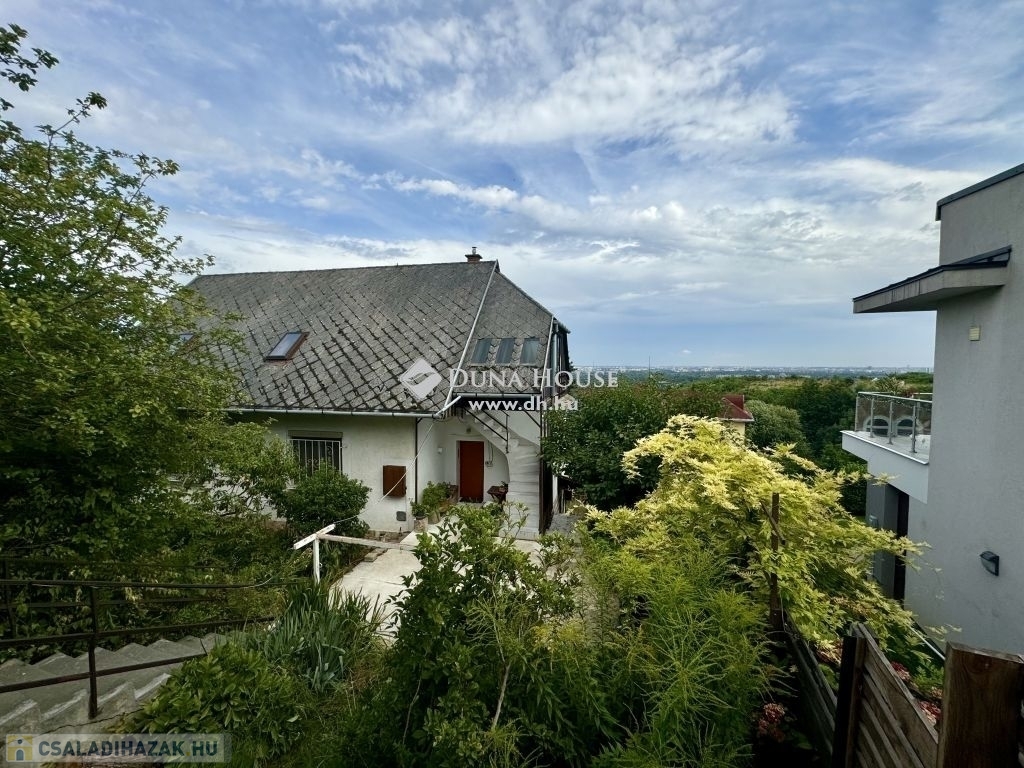 Budapest III. kerületében, Róka-hegyen, egy Ürömi útról nyíló csendes utcában eladó ez az örökpanorámás családi ház, amely egy földszinti lakásból és egy udvarról, lépcsőn át megközelíthető lakásból áll.