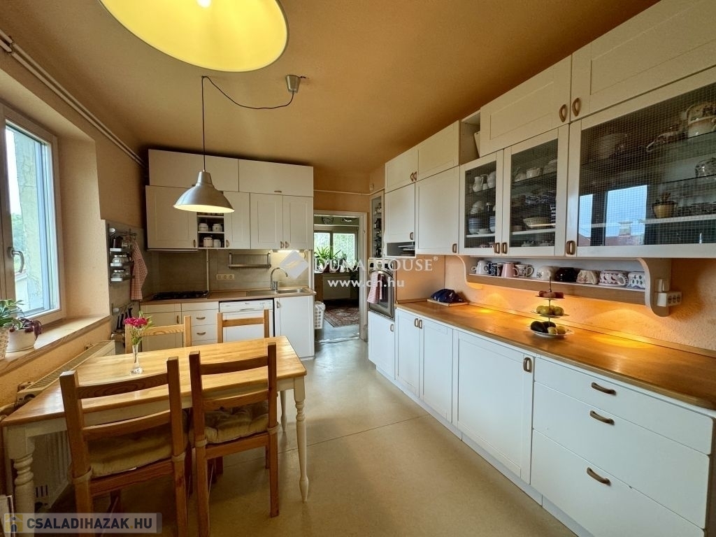 Ház:Bruttó 180 m2 alapterületű, 1955-ben épült tömör téglából és vastag, 50 cm-es falak jellemzik. Cirkó fűtéséről Vaillant gázkazán gondoskodik. Az egész házban kicserélésre került a vízvezeték, a lenti lakásban pedig az elektromos hálózat is. A két lakás villanya külön mérővel rendelkezik, valamint a fűtés is egyedi lakásonként.