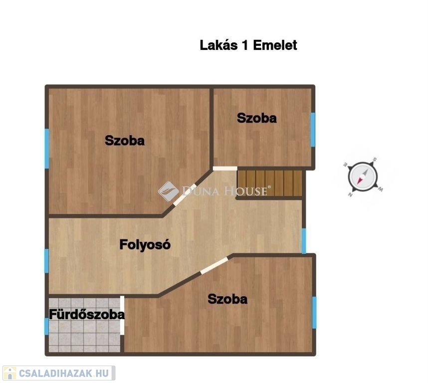 - Mindkét lakás kétszintes, beépített tetőtérrel