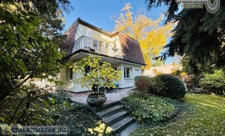 Csend, zöld és privát kert a városban – Budapest egyik legkedveltebb részén, a Római-parton, egy hangulatos zsákutcában eladó ez a 262 m²-es, öt szobás családi ház, 598 m²-es, gyönyörűen parkosított telken.