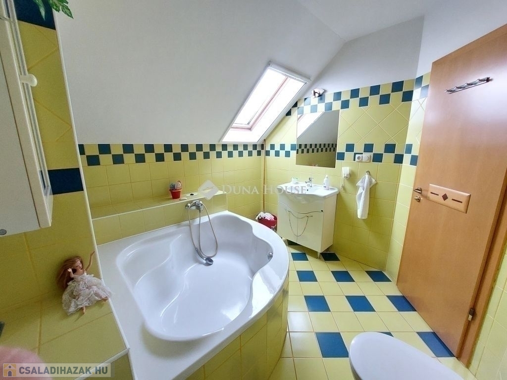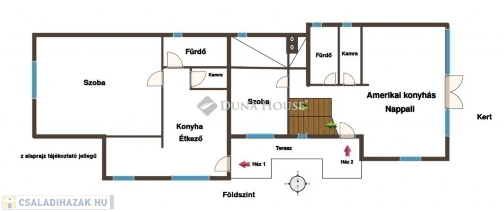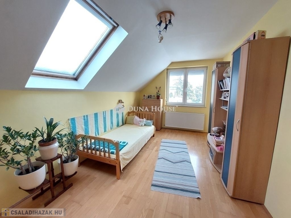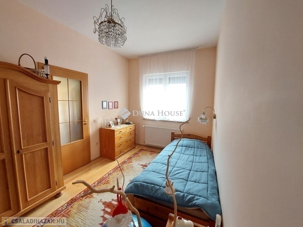 A 2004-ben épült, DUPLAKOMFORTOS, KÉTSZINTES, összesen 110 nm-es házrész földszintjén TÁGAS, AMERIKAI KONYHÁS nappali kapcsolódik egy 21 nm-es NYITOTT teraszhoz. Ezen a szinten található még egy VILÁGOS, DÉLI FEKVÉSŰ, 14 nm-es vendégszoba, egy rejtettzuhanyzós fürdőszoba és egy PRAKTIKUS kamra. Az emeleten két TÁGAS, VILÁGOS hálószoba és egy MEGNYERŐEN SZÉP fürdőszoba kapott helyet.