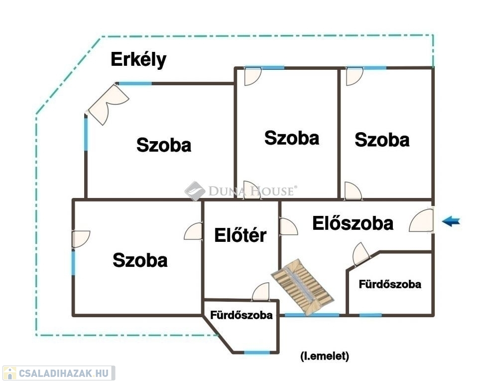 - 2 erkély, amelyek közül az egyik körbeöleli a házat