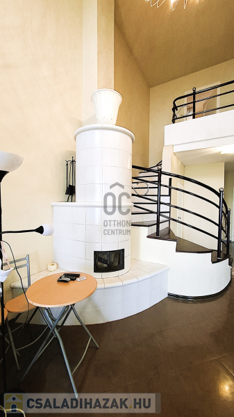 Fent: Hatalmas, felújított, modern lakás, különleges, átriumokkal, amik nagyvonalú tereket biztosítanak. A lakás a konyha-étkező valamint nappali mellett három hálószobával rendelkezik a felső szinten.