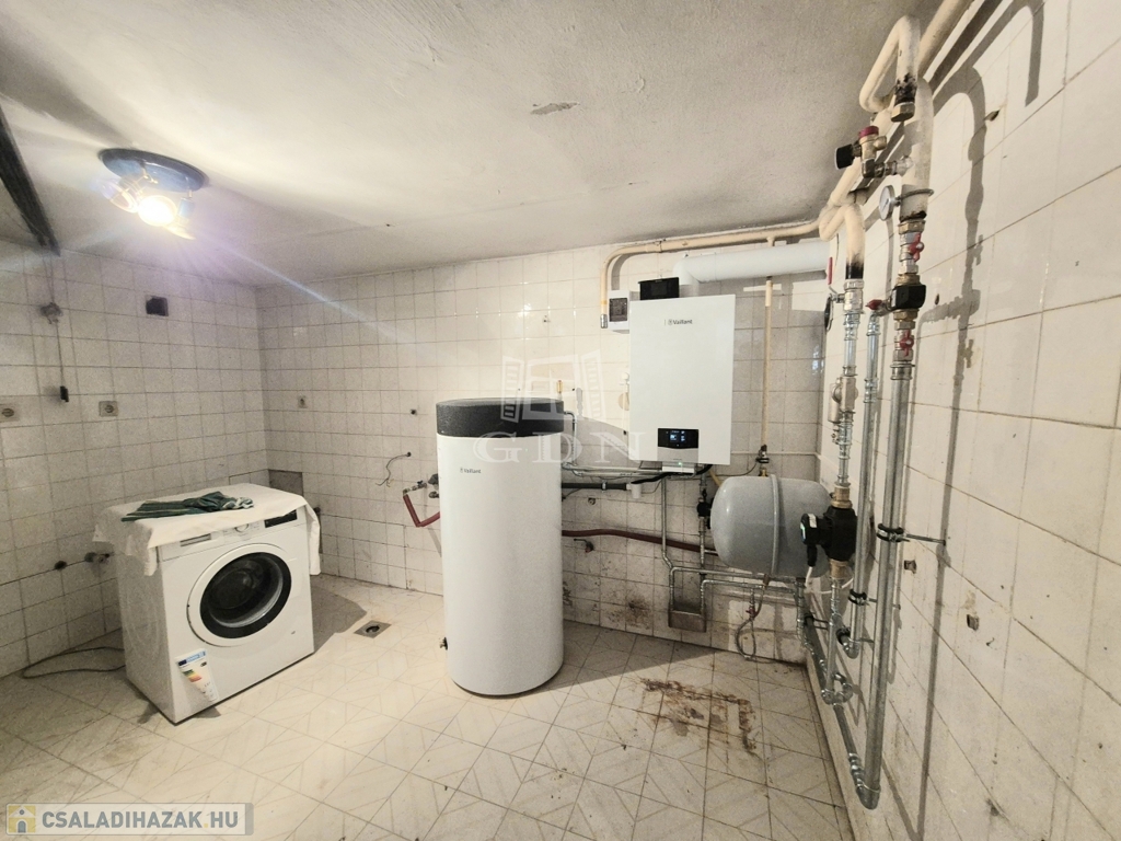 A gépkocsibeállást elektromos úszókapu könnyíti, a fűtésről mind a három szinten és a garázslejárónál is vaillant kondenzációs gázkazánról működtetett padlófűtés, a nagyfogyasztású háztartási gépek működtetéséről korszerű-terhelhető villanyhálózat, a biztonságról riasztó gondoskodik.