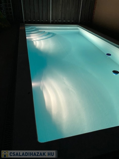 fűthető, nyakzuhanyos medence a kertben