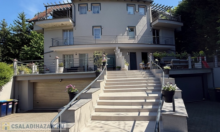 In one of the most peaceful and green areas of Budapest’s 3rd district, in Testvérhegy, a luxurious 4-level semi-detached house with a total area of 246 m², 5 rooms, and a private heated swimming pool is offered for sale.