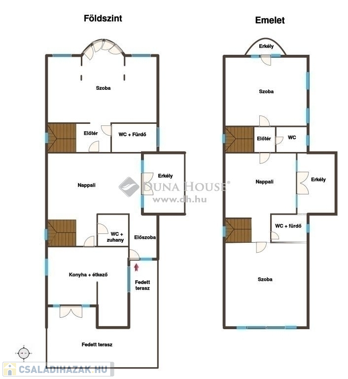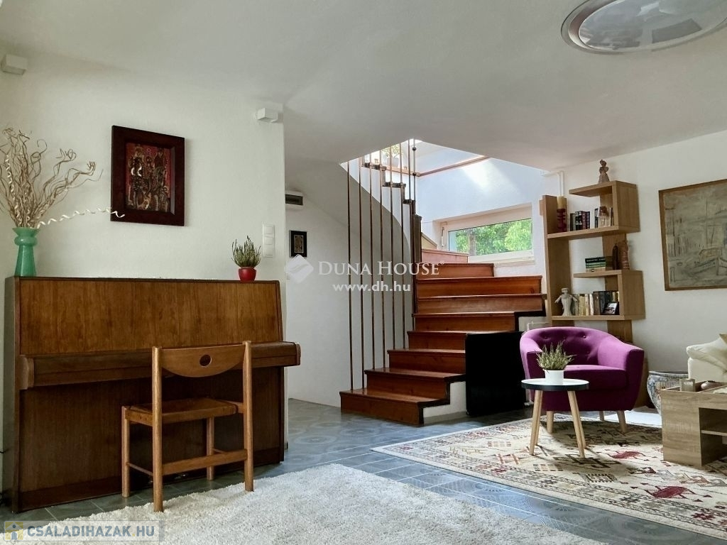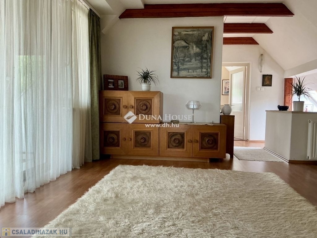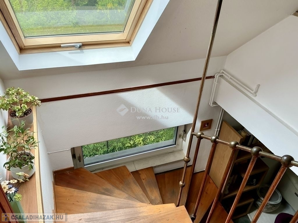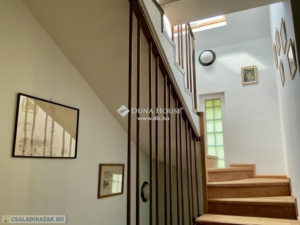 A lépcsőházon keresztül feljutva az emeletre szemben egy kádas fürdőszoba, balra, egy gyönyörű, boltíves, panorámás szobába érkezünk. A szobával szemben erkélykapcsolatos, tágas, világos nappaliba, a nappaliból egy szintén köríves kialakítású, panorámás, tágas, világos hálószobába lépünk.