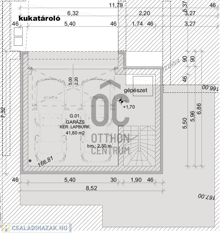 A garázsban 2 gépkocsinak van beállási lehetősége, plusz motor, kerékpárok elférnek.