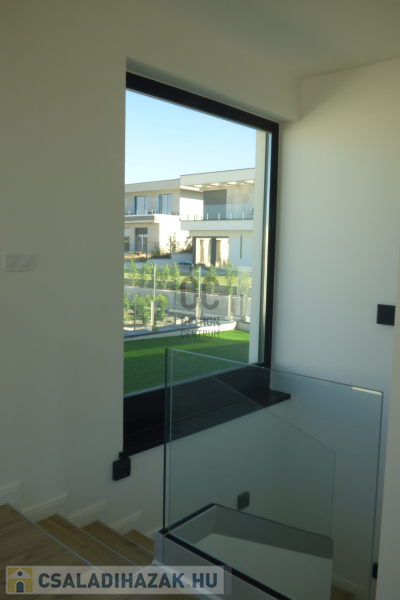 Az emeleten három hálószoba, gardrób és nagy fürdőszoba valamint egy óriási panorámaterasz található.