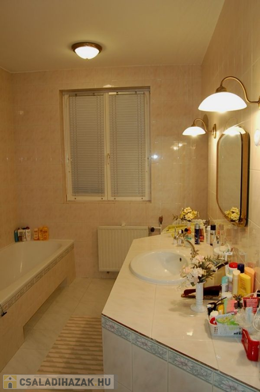 A felső szinten további 4 hálószoba, fürdőszoba és hangulatos fedett körterasz. Az ápolt kertben úszómedence.
