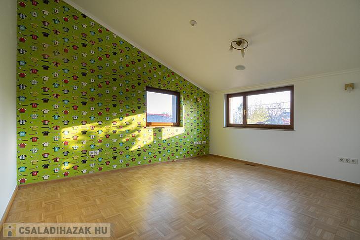 Az emeleten 3 szoba, egy nappali, 2 gardrób és 2 fürdőszoba van, melyből egy zuhanyzós, egy pedig kádas, továbbá egy hatalmas terasz és két tetőkert. Mivel ezen az emeleten van egy külön bejárat is, így kialakítható egy önálló, 2 hálószobás lakás belőle.