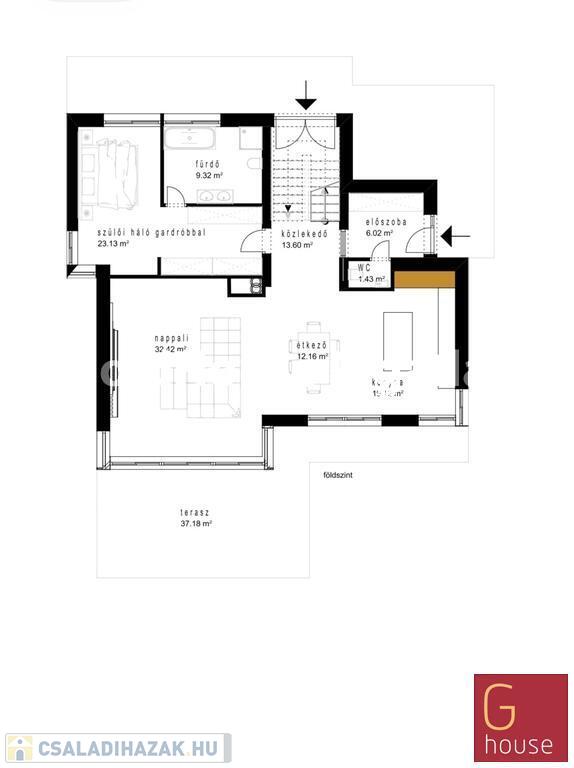 A földszinten található a szülői hálószoba saját, kádas fürdőszobával, amely privát lakrészként biztosít kényelmet és nyugalmat.