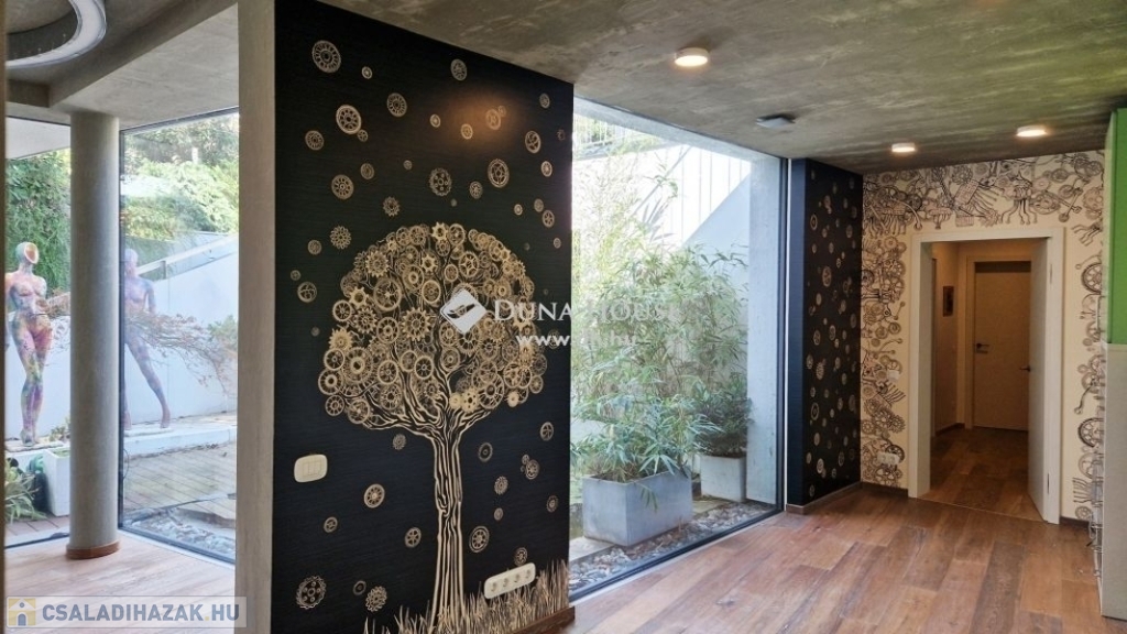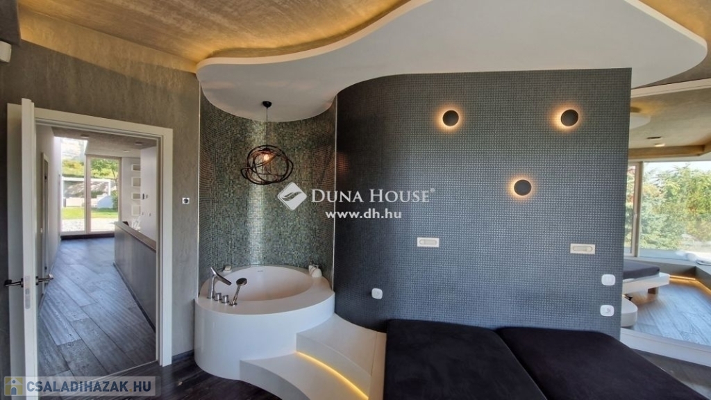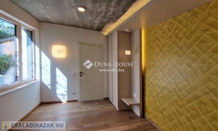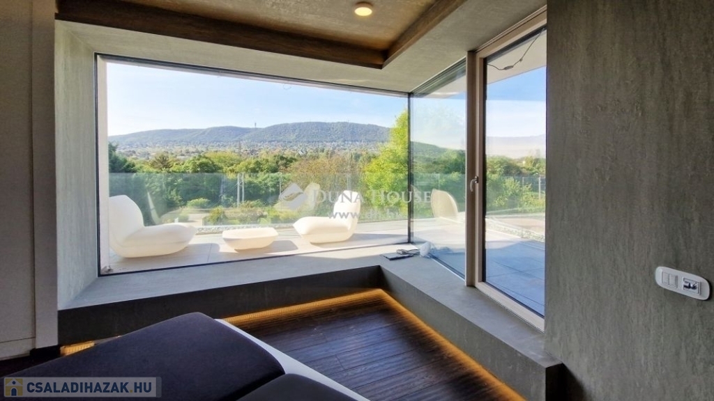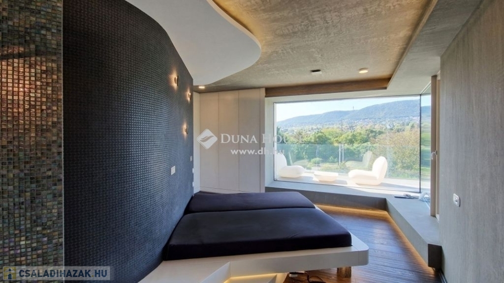 Kedves Érdeklődő!Figyelmébe ajánlom Aranyhegyen, hatalmas telken ezt a modern, nappali + 4 hálószobás, luxus kivitelű családi házat ahonnan a felkelő és a lenyugvó napot is a teraszáról csodálhatja.Méretek:Telek: 1558 m2Földszint: 198 m2Emelet: 94 m2Földszinti terasz: 15 m2Emeleti terasz: 22 m2Garázs: 51 m2Medence: 20 m2A földszinti 40 m2-es napsütötte, déli tájolású nappaliból tudunk kilépni a medencés teraszra. Az öntözőrendszerrel felszerelt, gyönyörűen parkosított kert igazi megnyugvást ad egy sűrű nap után. A házhoz tartozik kerti konyha, szauna, jacuzzi és saját fitness terem is.A földszinten a nappali, konyha, étkezőn túl dolgozósarok, fürdőszobás vendégháló, az emeleten további három hálószoba került kialakításra. Összesen három fürdőszoba szolgálja a családot. A master bedroom-ból egy hatalmas jacuzzis terasz és gyönyörű panoráma nyílik a környező hegyekre. Ehhez a hálószobához saját fürdőszoba és pezsgőfürdő is tartozik. A ház garázsa dupla állásos ezen kívül tárolóhelyiségek is rendelkezésre állnak.A ház 2016-ban épült a legmodernebb anyagokkal. A fűtés-hűtés geotermikus technológiával került megoldásra. A rezsi ennek köszönhetően mérsékelt. Az ingatlanból csodás panoráma nyílik a környező hegyekre.Közelben óvoda, magyar és nemzetközi (British School) iskolák, uszoda, jégcsarnok, éttermek, cukrászdák, lovarda, Csillaghegyi strandfürdő, golf klub, szórakozási sportolási lehetőségek. Tömegközlekedés szempontjából is kiváló hely, hiszen néhány percre található a GoBuda bevásárlóközpont, Stop Shop, Tesco, Lidl, töltőállomás, egészségügyi központ, pénzintézetek.Legyen tulajdonosa egy újszerű, modern otthonnak az építkezés minden gondja nélkül! Hívjon bizalommal, ha ajánlatom felkeltette érdeklődését!