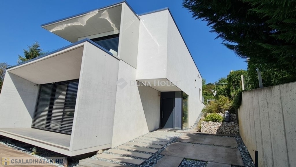 III. kerület, Aranyhegy csendes, zöld, mégis kiemelten keresett részén eladó egy minimál stílusú, modern, nappali + 4 hálós családi ház, nagyvonalú terekkel, medencével, óriási teraszokkal és igényesen parkosított, nagy méretű telekkel.