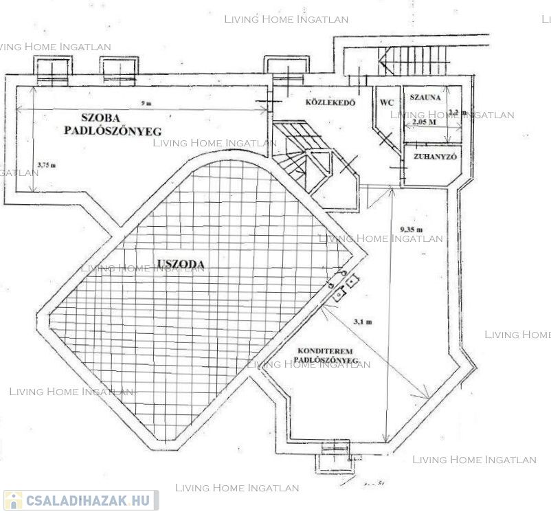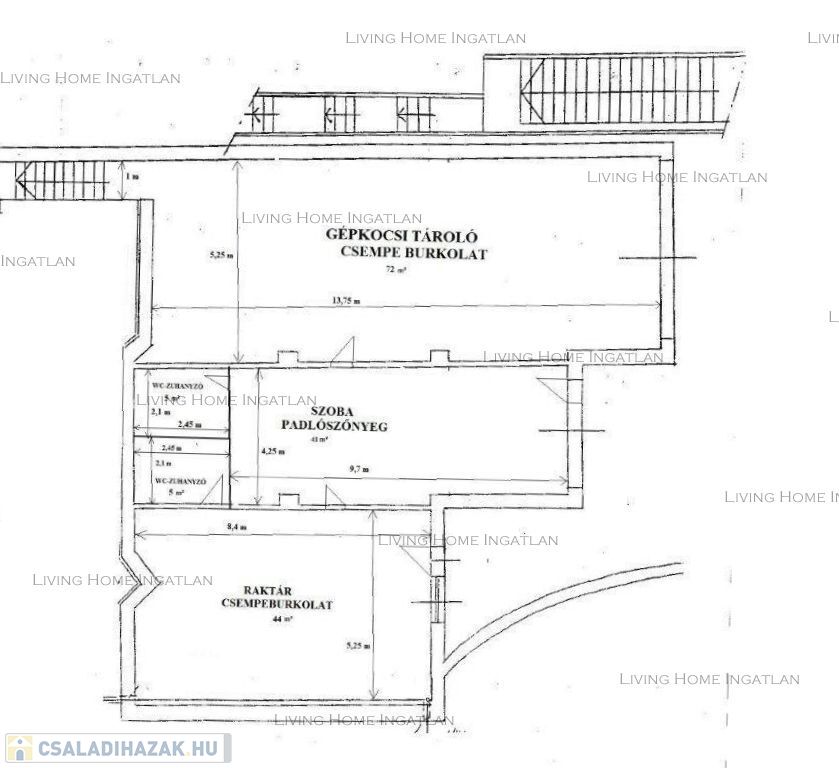 Az épület jelenlegi hasznos alapterülete kb. 700 nm. További 100 nm alapterület beépíthető szintenként.