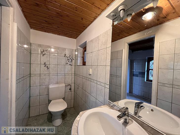 A kétszintes ház jelenlegi elosztása 3 szobából, konyhából, étkezőből és fürdőszobából áll! A földszinti részen található 1 szoba, konyha, étkező és a fürdőszoba. Az emeleten pedig a másik 2 szoba.