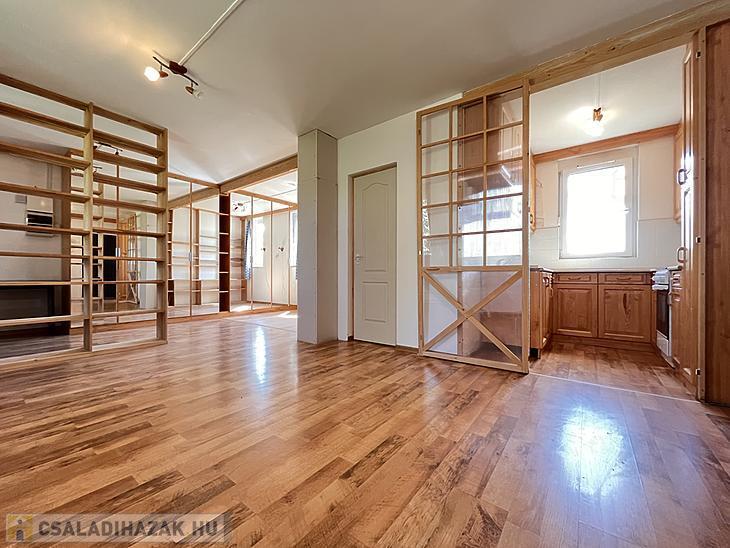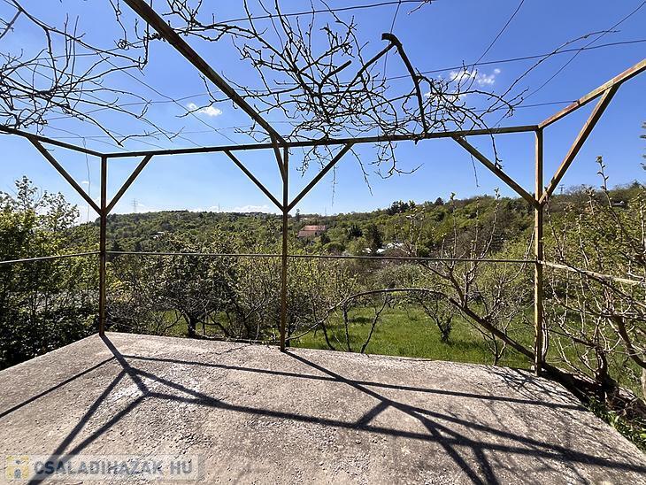 Békásmegyer-Ófaluban ELADÓ egy panorámás 84 négyzetméteres ÖNÁLLÓ CSALÁDI HÁZ 37 négyzetméteres fedett terasszal és kocsibeállóval 1590 négyzetméteres telken.