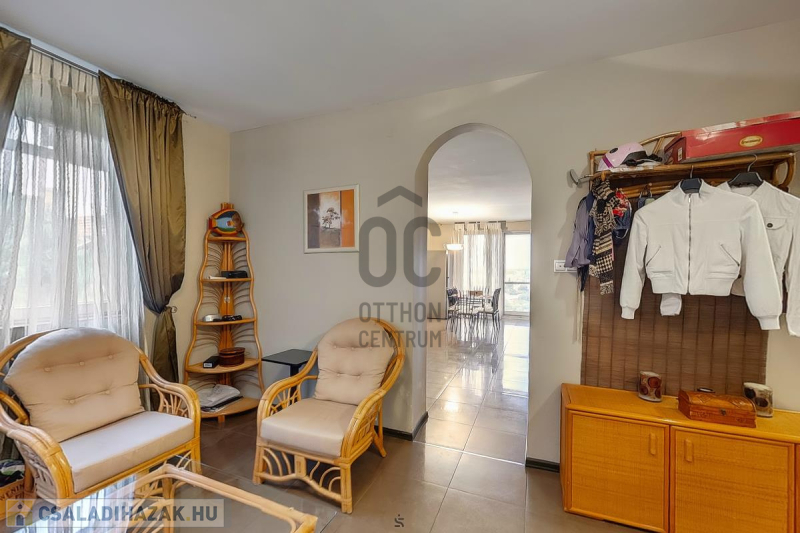 Középen: 2 jó átlagos állapotú, teraszos nappali + 1 illetve nappali +2 hálós lakás, ideális önálló lakásnak, vendégeknek vagy irodának.