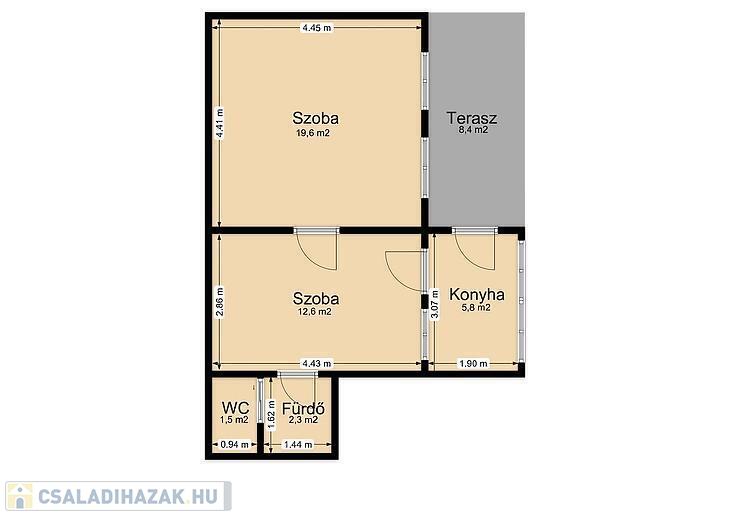 Tartozik a lakáshoz egy 8 négyzetméteres terasz.