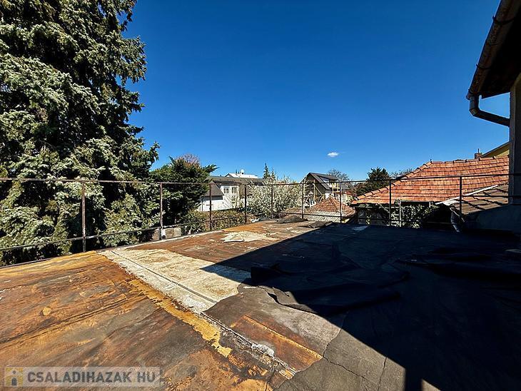 Tartozik a házhoz egy 25 négyzetméteres tetőterasz és egy 20 négyzetméteres pince.