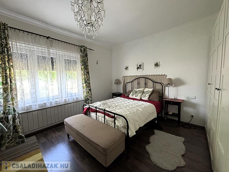 Az ingatlan felújított állapotú. A felújítás és átépítés 2012-ben zajlott. A ház külső szigetelést kapott, a villanyvezetéketek áthúzták, a vízvezetékeket és a gázcsöveket korszerűsítették. Kondenzációs cirkó és 3 inverteres klíma került beszerelésre. A nappaliban hőszigetelő aljzatbeton, éjszakai áramról működtetett falfűtés és tömegkályha is gondoskodik a kellemes hőmérsékletről. Az ablakok és az ajtók thermo üveges műanyagok, redőnnyel és szúnyoghálóval. A konyha, a fürdőszoba és a WC felszereléseit, fali, illetve padlóburkolatait, a többi helyiség padlózatát és a belső ajtókat kicserélték. A szobák laminált padlósak, a többi helyiség járólapos.