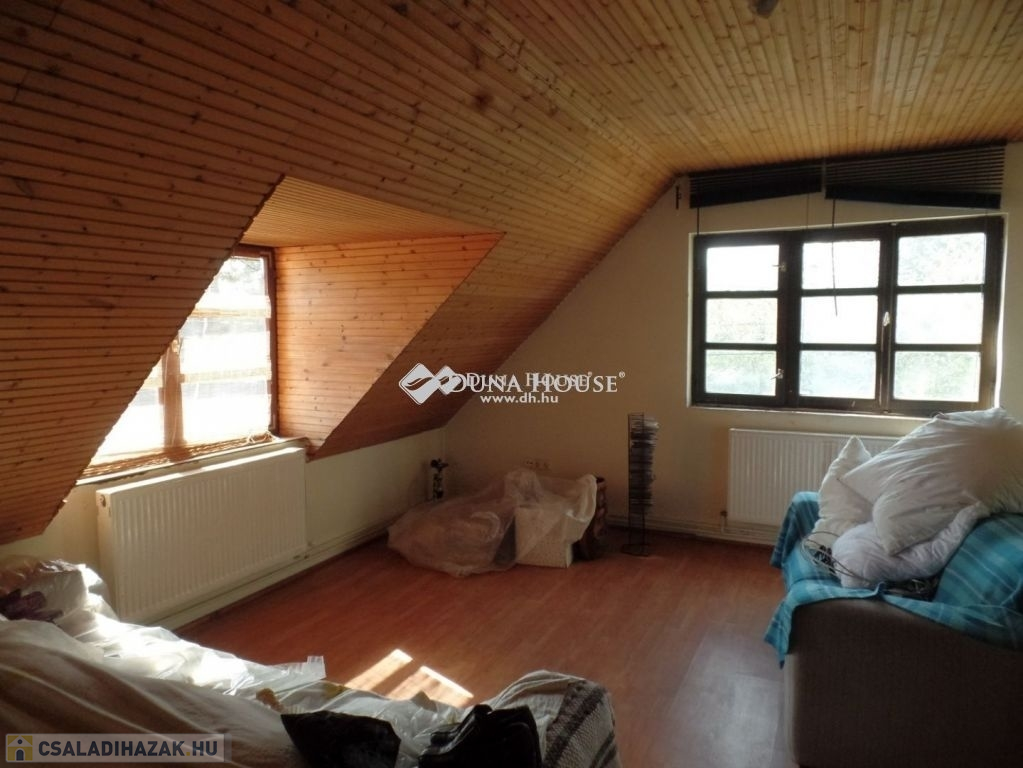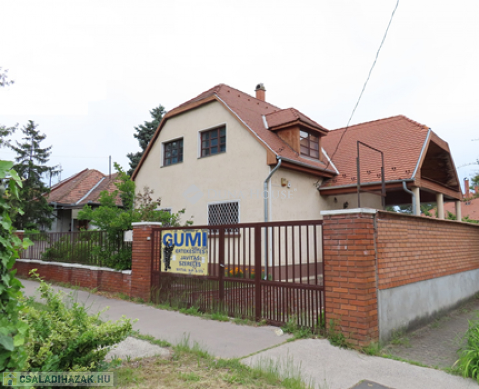 családi ház eladó nagy családnak, több generációnakA ház saroktelken helyezkedik el, a telek területe 647 nm, a ház alapterülete 10*10 m, melynek a tetőtere is beépítésre került. Mindkét szinten teljes lakás került kialakításra, így akár két család részére is tágas, kényelmes lakótér áll rendelkezésre.Szintenként 3-3 szoba, konyha, fürdőszoba található, az épület alatt garázs és egy kb. 15 nm-es pince is elhelyezkedik. A lakás bejárata egy kellemes kiülős, fedett teraszról nyílik. Az emeletre jelenleg belső lépcső vezet, de a külső feljárat is kialakítható.A ház kívül is és belül is lakható állapotú, de a mai igények szerinti modernizálás célszerű. Fűtése gázcirkó, a melegvizet bojler adja.Az épület előtt előkert található, illetve az udvarból is van lehetőség nagyobb kert kialakítására. Az udvar több gépkocsi beállására is alkalmas. A ház körbejárható.A házhoz tartozó melléképületben jelenleg egy gumis műhely működik bérleményként, amely a későbbiekben más célra is hasznosítható. Az ingatlan jó választás lehet annak is, aki egy helyen szeretné megoldani a vállalkozást és a lakhatást! A ház tehermentes.Ideális választás lehet nagycsaládnak, vagy többgenerációs otthonnak, de akár befektetőknek is. A lépcső átalakításával, 2 függetlenül megközelíthető lakásból álló társasház kialakításának lehetősége is megvan.