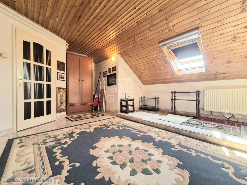 IV. kerület hangulatos kertvárosában kínálok eladásra, egy csendes mellékutcából nyíló, 360 m2-es, kétállásos garázzsal, melléképülettel rendelkező telken elhelyezkedő, két generációs, három lakó + pinceszintes, 6 szobás, dupla komfortos, kondenzációs kazánnal fűtött, gazdaságos fenntartású, klimatizált családi házat.
