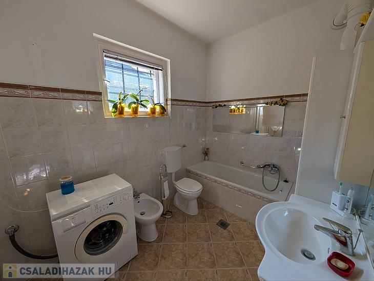 A pince nagy és száraz. A háznak van garázsa is és 15m fedett autóbeálló része is.