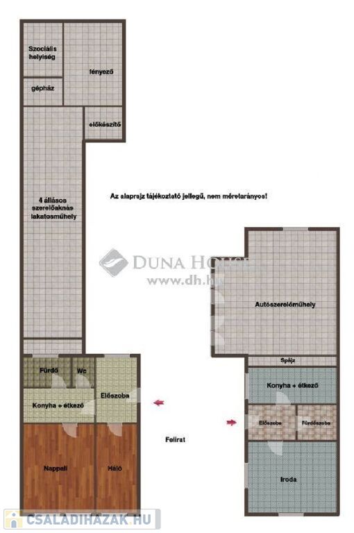 Az épület 1960-ban épült, 10 éve felújításon esett át. Vezetékek, nyílászárók cseréje,fűtés korszerűsítése, és a ház szigetelése, tető átgerendázása történt meg.Családi ház (51 m2), iroda (45 m2., amely 1 szoba összkomfortos családi ház) 99 m2 lakatosüzem,51 m2 szerelőműhely és 60 m2 fényezőüzem egy 1086 m2-es telken.A családi házban nappali, hálószoba, étkezős konyha, fürdőszoba és előszoba van.Az irodában 1 nagy szoba, konyha-étkező, fürdőszoba, kamra és előszoba van, alkalmas lakhatásra is.A lakatosüzem 4 állásos, 99 m2, fényező műhely előkészítővel 60 m2, légtechnikával és személyzeti helyiségek.Ha telekként lenne jelentősége Önnek, az LK-1/IV-5/1 övezetbe esik.Bővebb tájékoztatásért várom hívását.