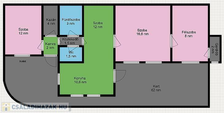 Két bejárattal rendelkezik, ennek köszönhetően akár két külön lakrész kialakítása is megoldható.