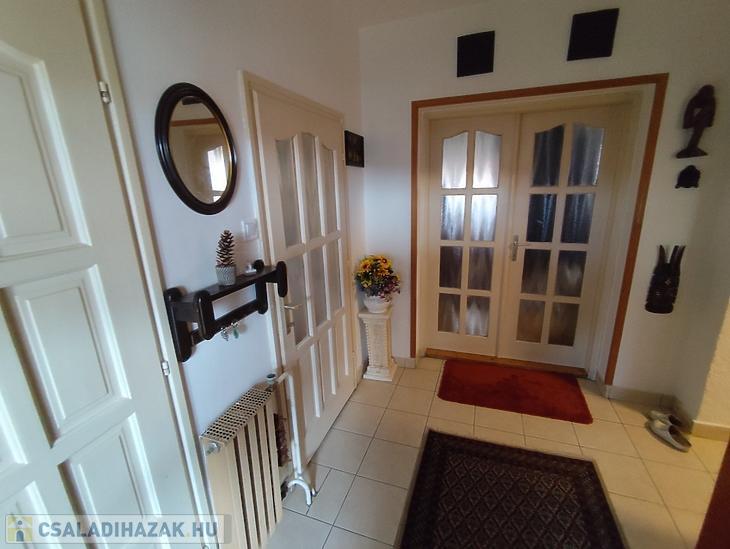 Az 1. emeleten található belső kétszintes, teraszkapcsolatos ingatlan br.: 130 nm, n.: 110 nm, 3 szoba, beköltözhető állapotú, duplakomfortos. Az 1. emeleten fa keretes ablakok, a tetőtérben velux ablakok található. A nappali fa parkettával, a szobák padlószőnyeggel, a többi helyiség járólappal burkolt. A fűtésről kombi cirkókazán gondoskodik, a tetőtérben már újabb lapradiátorok szereltek fel. A nagyobb komfortérzet kialakítása érdekében, a tetőtérben egy hűtő-fűtő inverteres légkondicionáló is beépítésre került.