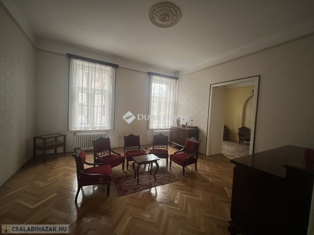 Különleges polgári családi ház eladó a VIII. kerületben 656 m²-es telken!Budapest VIII. kerületében kínálunk megvételre egy igazán egyedi hangulatú, az 1920-as években épült polgári családi házat, amely önálló, 656 m²-es telken helyezkedik el igazi ritkaság a környéken!A 127 m²-es lakótér 3,5 szobával és egy nagy, fényárban úszó nappalival rendelkezik. A hatalmas ablakoknak köszönhetően a ház rendkívül világos, a tágas terek pedig igazi polgári eleganciát sugároznak.Főbb jellemzők:Telek: 656 m²Lakótér: 127 m²3,5 szoba + nagy nappaliÉpítés éve: 1920-as évekFűtés: gáz cirkó + 1 db Héra + 2 db fa tüzelésű kályha64 m²-es pince (3 külön helyiséggel)Beépített teraszTetőtér: kb. 80 m² (további beépítési lehetőség)A nappali hatalmas ablakain keresztül egész nap természetes fény árad be, ami különleges, meleg atmoszférát teremt.A 64 m²-es pince három különálló helyiségből áll, így kiválóan alkalmas tárolásra, műhelynek vagy akár hobbihelyiségnek is.A kb. 80 m²-es tetőtér további lehetőségeket rejt magában igény szerint beépíthető, így az ingatlan tovább bővíthető.A nagy méretű telek kiváló lehetőséget kínál kert kialakítására, pihenőtér létrehozására vagy akár további fejlesztésre is.Ez az ingatlan ideális választás lehet: nagyobb család számára kétgenerációs otthonnak vállalkozás céljára befektetőknek fejlesztési potenciál miattEgy karakteres, különleges ház, amely megfelelő korszerűsítéssel valódi ékkővé válhat. További információért és megtekintésért keressen bizalommal!