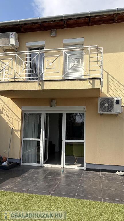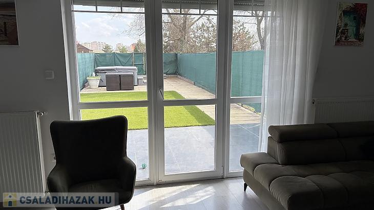 A 111 nm-es lakás (ebből 100 nm fűtött lakótér) egy 190 nm-es telken helyezkedik el, praktikus elrendezéssel. A nappali mellett három külön nyíló hálószoba biztosít kényelmes életteret, így ideális választás családok számára. A világos nappaliból közvetlen kijárat nyílik a hangulatos, műfüves hátsó kertbe, amely holland pázsittal burkolt, gondozásmentes zöld környezetet kínál. Az előkert és a hátsó kert is rendezett, privát teret biztosít a pihenéshez.