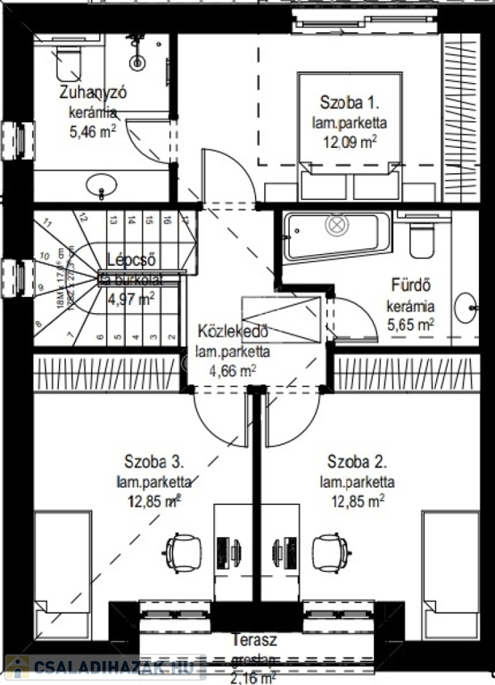 Fürdőszobák: összesen 3 (2 az emeleten, 1 a földszinten)
