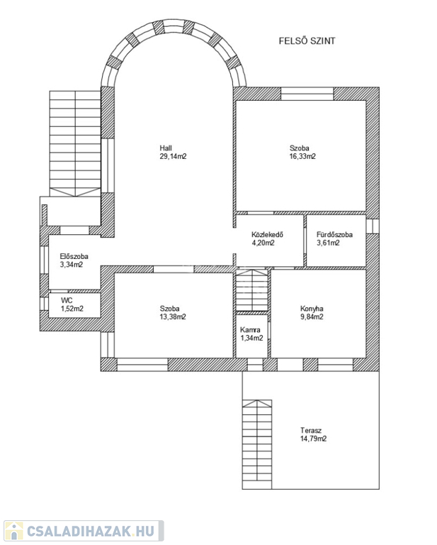 5 szoba, 2 konyha, 2 fürdőszoba, tágas hall és reprezentatív fogadóterek