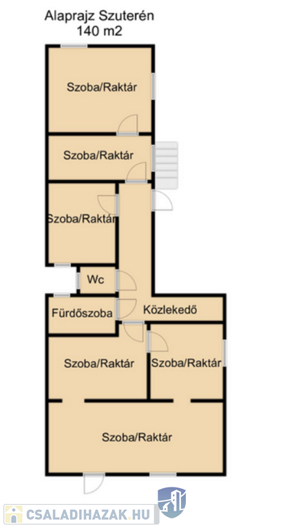 - A ház kert felöli teraszáról felvezető lépcsőről nyíló emeleten helyezkedik el.