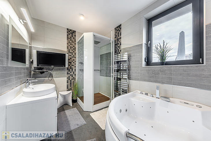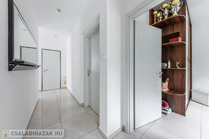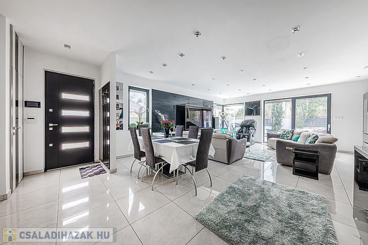 A ház a mai modern építési technológiával, korszerű kivitelezéssel és prémium anyagokkal épült. A teljesség igénye nélkül: elektromos kapubejáróval és fűtött garázzsal, napkollektorral, hang és hőszigetelt ajtóval, valamint biztonsági kamera rendszerrel felszerelt. Elektromos autó töltése biztosított. A ház melegéről kombi cirkó gondoskodik. A korszerű műszaki adottságoknak köszönhetően az éves rezsiköltsége rendkívül kedvező.