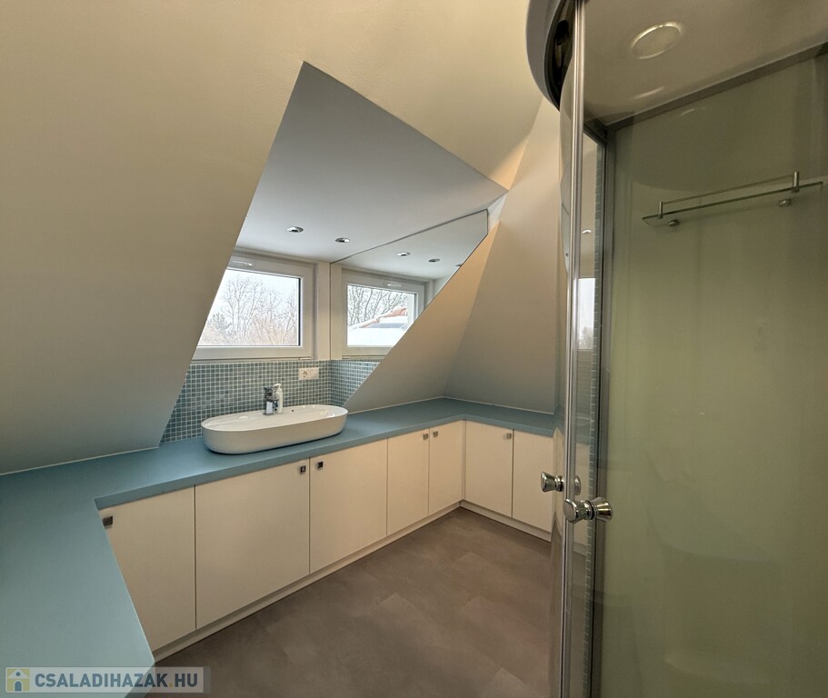 District 11. of Budapest, in on the border of Kelenvölgy and Péterhegy, in a quiet garden city, in Bolygó utca opening from Péterhegyi út, on a 694 sqm plot: a COMPLETELY REBUILT (2024) house with a net 140 sqm equivalent floor area, 3 levels, 4 rooms (living room + 2 GF bedrooms+ 1 attic room) + 2 attic half-rooms, double-comfort (2 bathrooms) + separate washroom/wc,