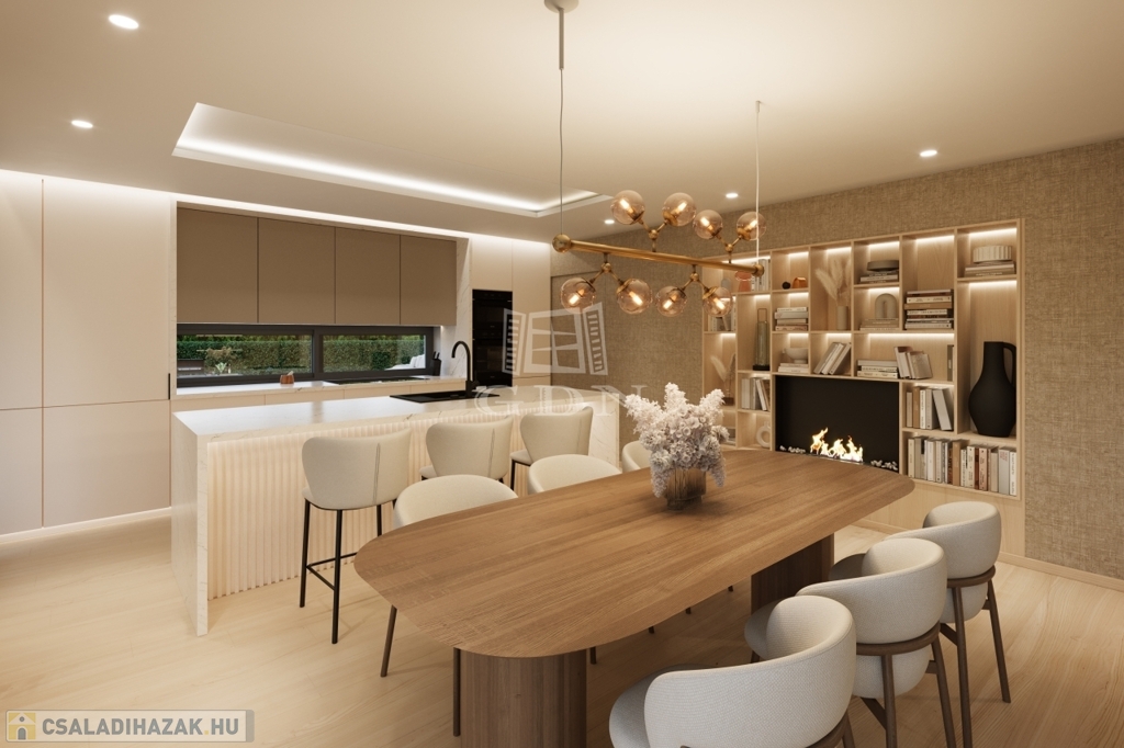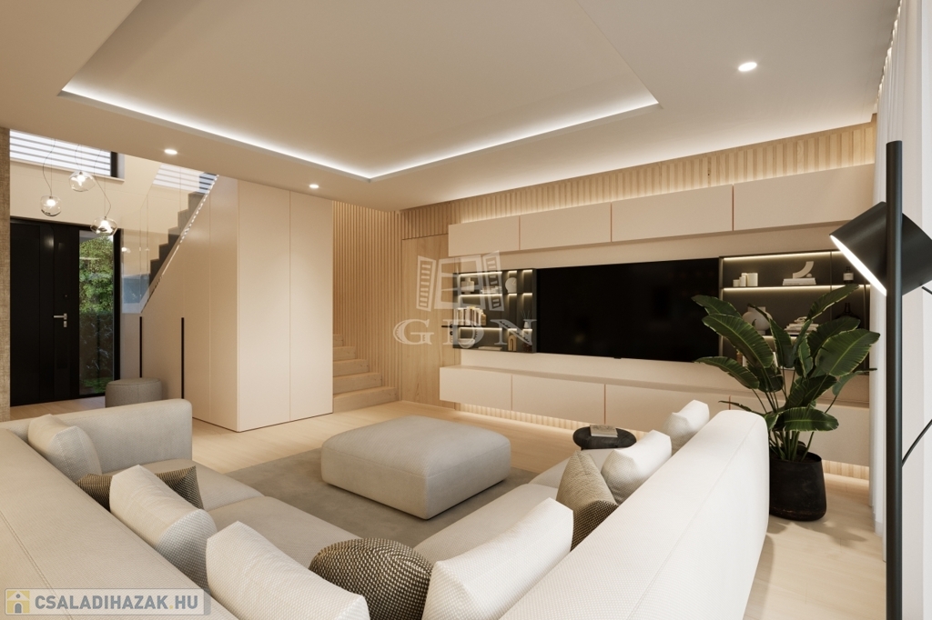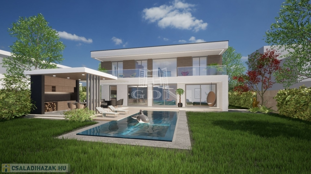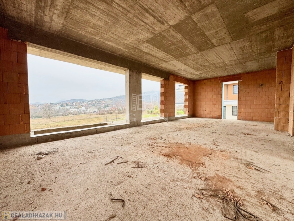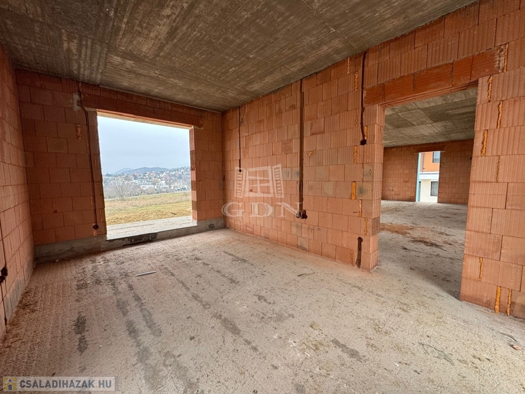 A gyönyörű panorámájú, szerkezetkész épület, napfényes D-K-i tájolású, 2 szintes, lakóterülete 266 nm, nappali + 4 hálószobás, (a szobák teraszkapcsolattal rendelkeznek). duplakomfortos, mely egy 1045 nm-es sík telken helyezkedik el. Kilátás nyílik itt, Budaörsre, Frankhegyre, és Budapestre is. A tervezői koncepció része volt, hogy a környező tájra néző panoráma szerves része legyen az enteriőrnek, így a ház szinte valamennyi helyisége napfényes, panorámás" kilátó" lett.