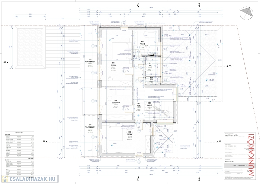 Az emeleten 2 gyerekszoba, dolgozó, + fürdőszoba kerül kialakításra.