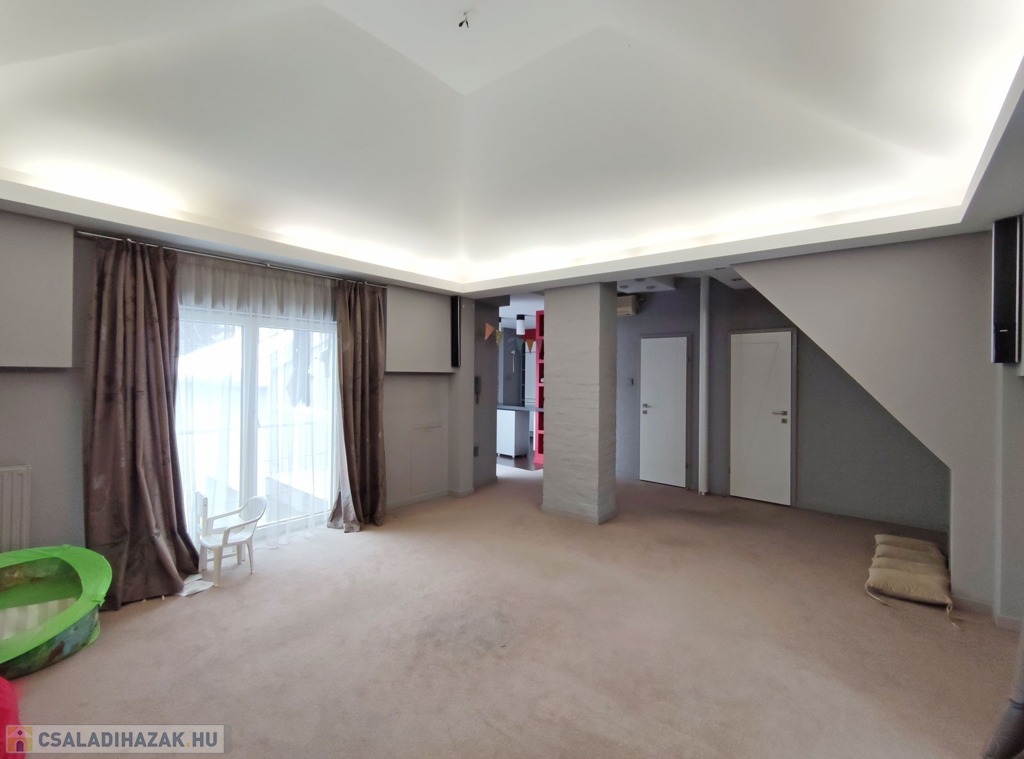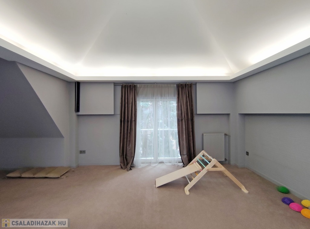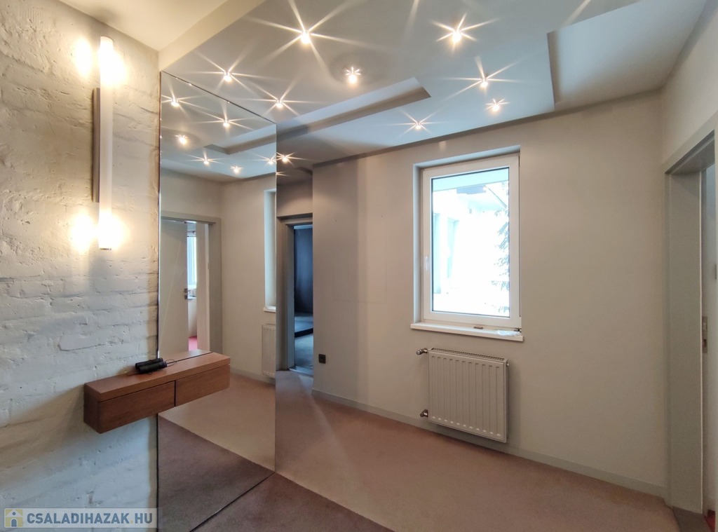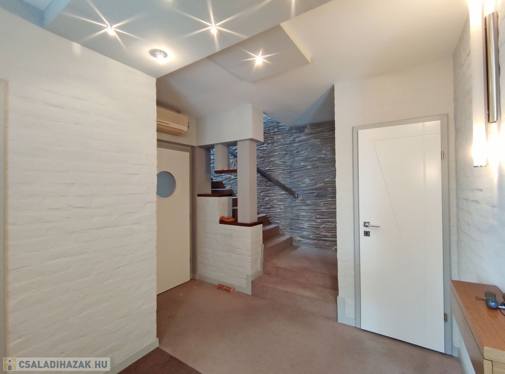 Műszaki jellemzők: a korábbi meglévő ingatlan, részleges bontásával és átalakításával, új beton sávalapozással, POROTHERM 30-as téglából, monolit vasbeton födémszerkezettel, acél oszlopokkal alátámasztott, fa gerendás tetőszerkezettel, pala tető fedéssel épült ház. Fűtése korszerű gázkazán, átalány díja 50.000 Ft, szintenként hűtő-fűtő klímával szerelt, korszerű elektromos hálózattal. A gépkocsi behajtás az udvarra elektromos kapun keresztül történik. A házban távfelügyeletre bekötött riasztó található, az udvaron pedig automata öntözőrendszer van beépítve. Részletes műszaki leírás elérhető.