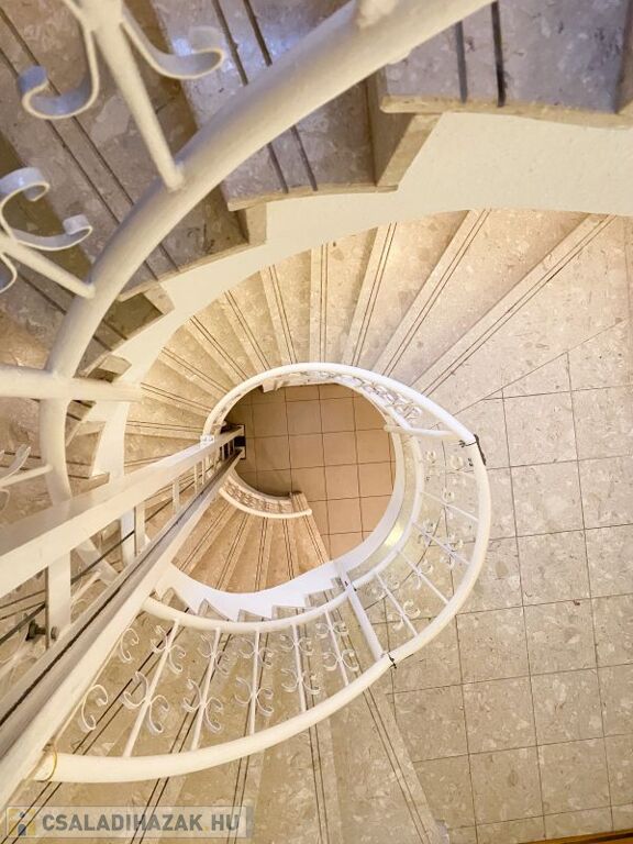 A középső szint 3,1 méteres belmagassága a tágasság érzetét adja. Egyedi belső ajtók, kandallós nappali, gépesített konyhák, visszafogott gipszstukkó díszítések, motoros redőnyök, légkondicionálás, riasztó, szép kovácsoltvas korlátok.