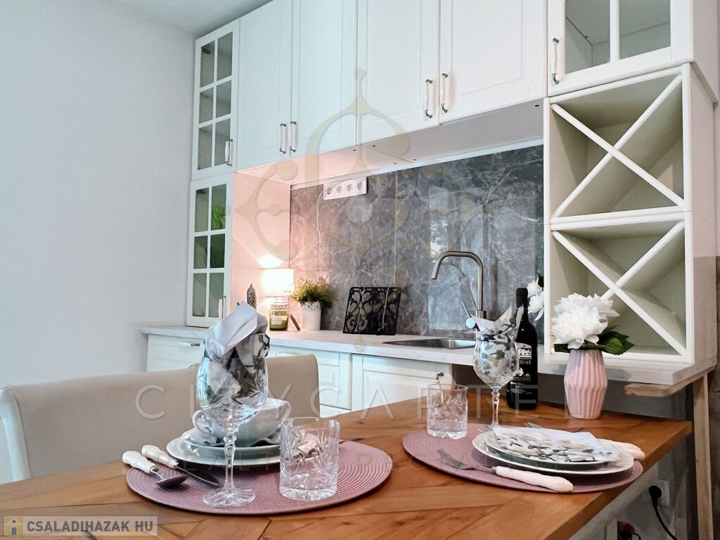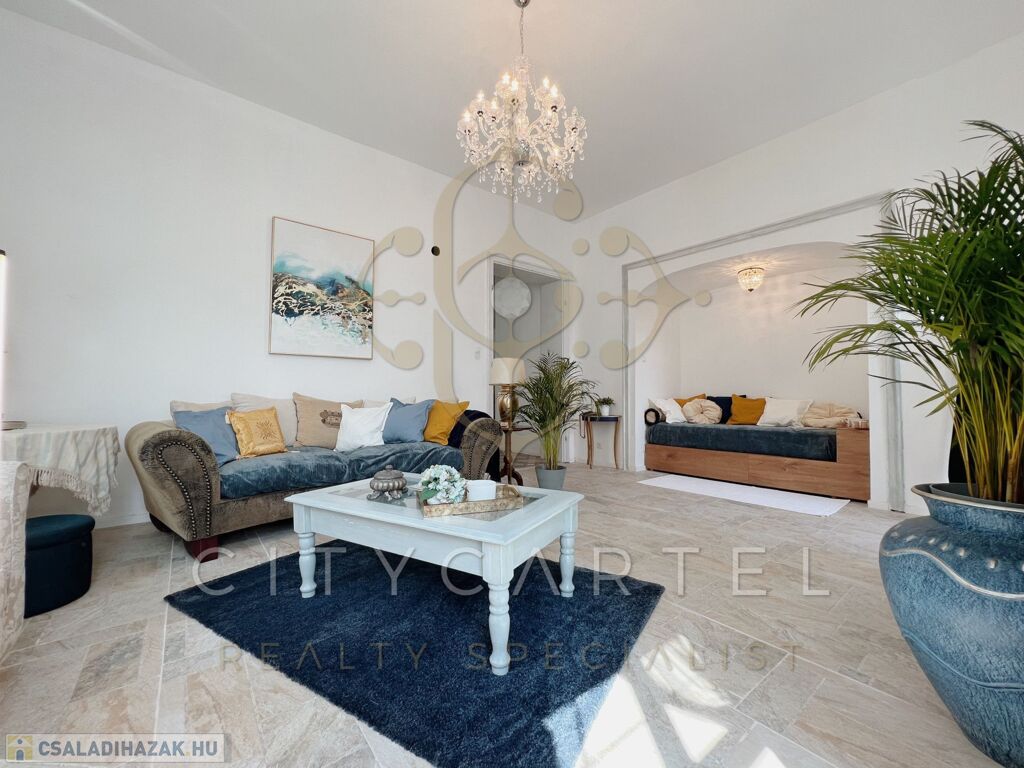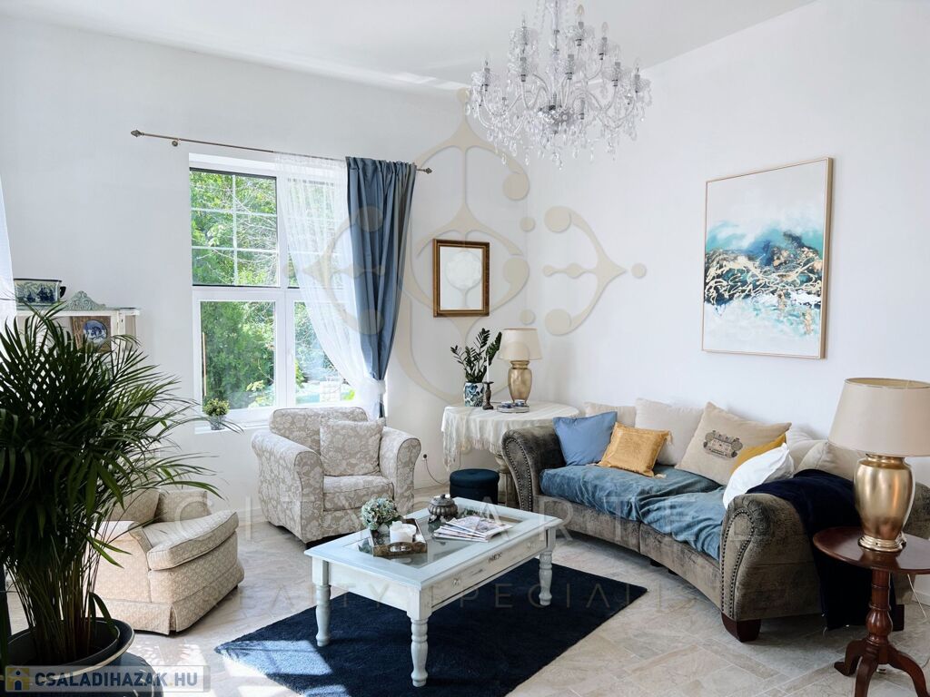 A 360+50 nm-es, háromszintes, impozáns nagypolgári villa a Provence-i házak romantikus hangulatát idézi, a napsütés egész nap körbe járja.