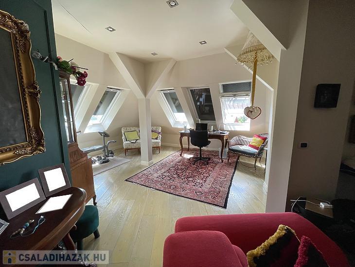 A tetőtérben egy nagy méretű szoba, hálószoba és egy fürdőszoba található meg.