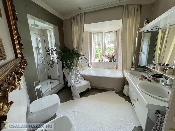Az 1. emeleten 3 hálószoba lett kialakítva, gardrób, fürdő külön WC-vel, és 2 db nagy méretű, világos, panorámás erkély.