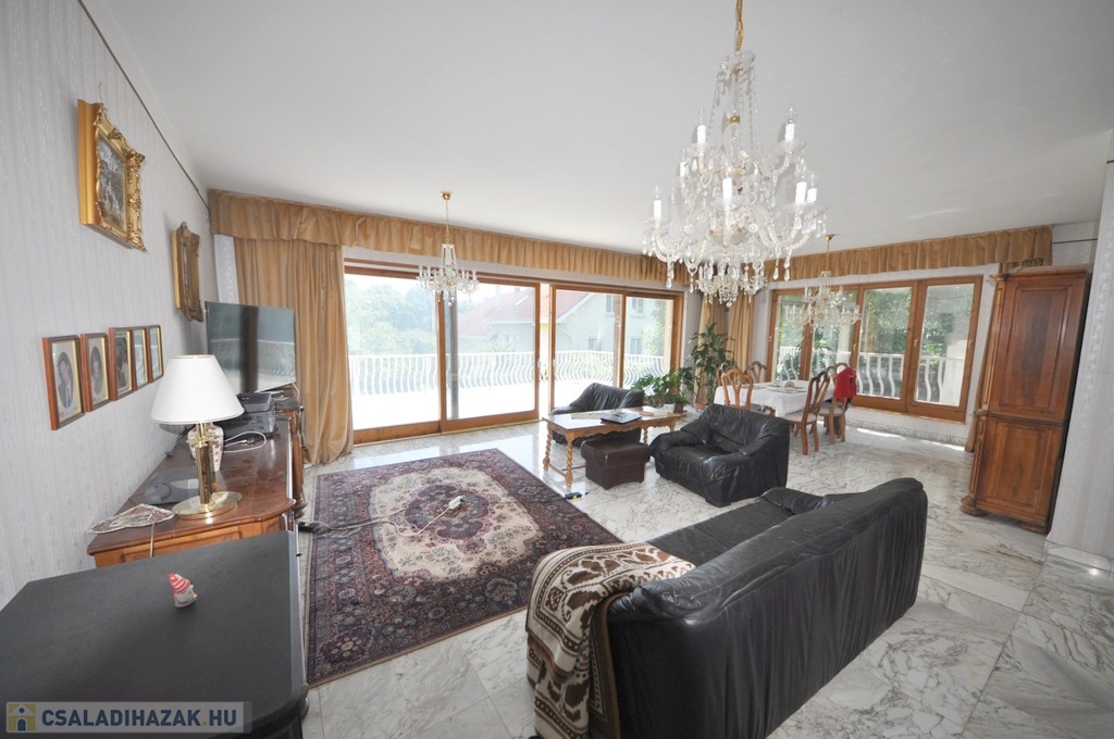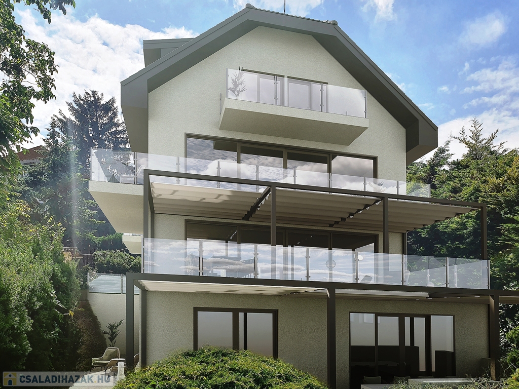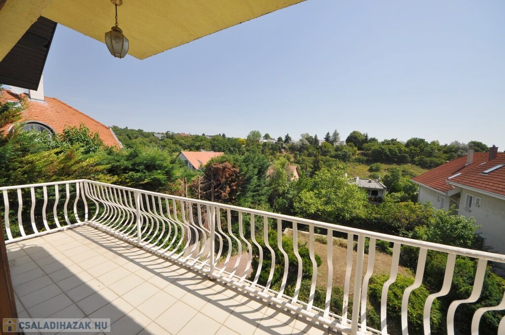 XII. Széchenyihegy egyik legkedveltebb, csendes, zöld mellékutcájában jó állapotú, minőségi anyaghasználattal saját célra megépített, brutto 450 nm lakóterű, több - összesen 64 nm - terasszal bíró, hegyvidéki panorámás, 8 szobás, igényes - akár HÁROM-NÉGY LAKÁSSÁ ALAKÍTHATÓ - családi ház eladó.