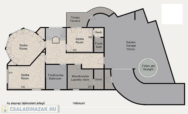 A 4 hálószoba kényelmes méretű és jól szeparált. 3 szoba a hálószinten helyezkedik el, melyekhez 2 fürdőszoba és egy terasz is tartozik.